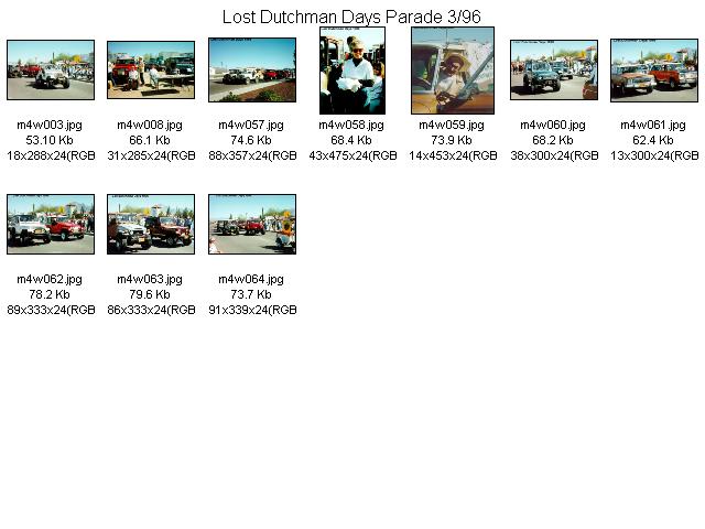 Each year the Apache junction folks have a parade. The Mesa 4 Wheelers participated in 1996 and here are a few shots from that event.